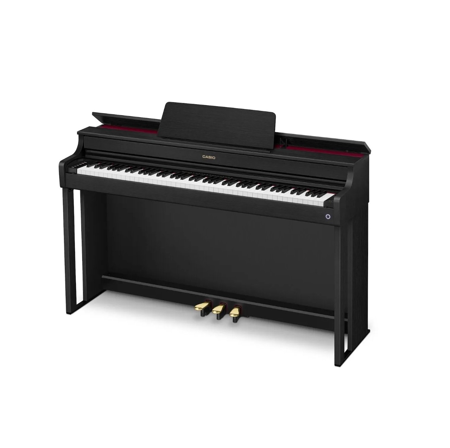 ・Três pedais integrados (incluídos): abafador (dois níveis, desligado), suave (dois níveis, desligado), sostenuto